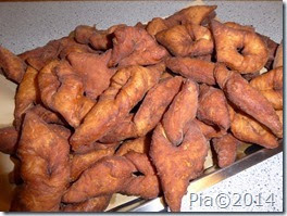 Efter den sene frokost gik jeg i gang med at bage klejner, efter min meget gamle opskrift. Jeg havde også planer om ærøpandekager, men den pakke gær røg tilbage i køleskabet, for pludselig var det atter spisetid.