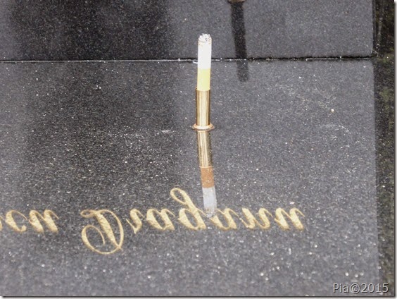 På Nordre Kirkegård studsede jeg over noget, der i min verden var lidt usædvanligt. På afstand så jeg en mand kom ud fra dette gravsted. Da jeg gik forbi, mødte jeg dette specielle syn, eller måske kommer jeg bare for sjældent på kirkegårde? Er du skarp, kan du se det på billedet ovenfor. Ellers er det zoomet ind herunder.